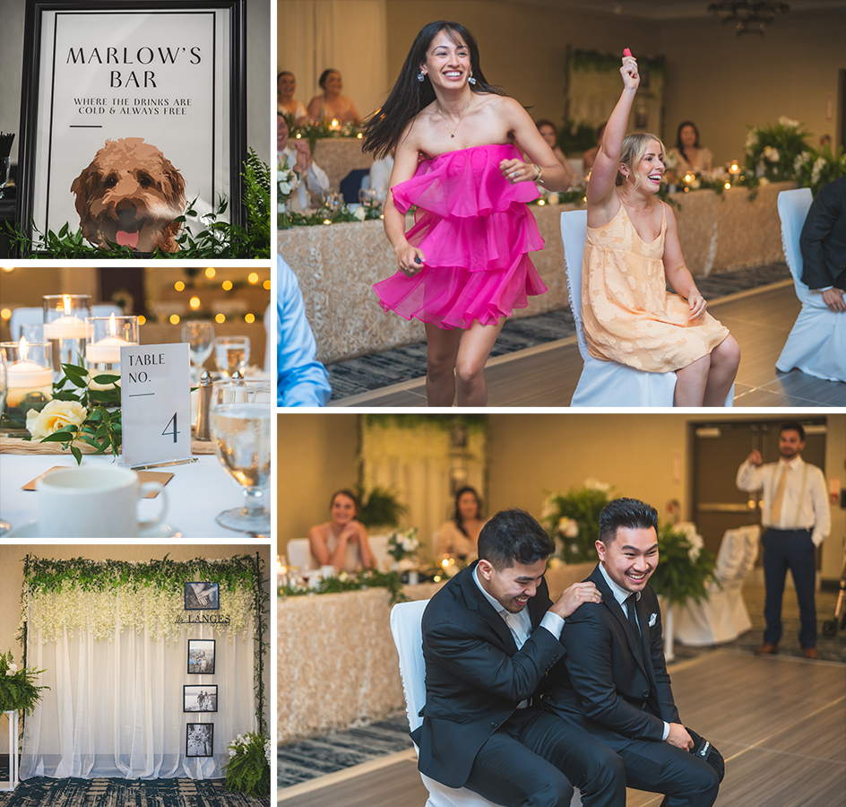 The celebration continued at Four Points in Sarnia, where guests were treated to a delightful cocktail hour, followed by a sumptuous dinner and drinks. The reception was a true reflection of Meghan and Colin’s personalities—filled with warmth, laughter, and a sense of fun.