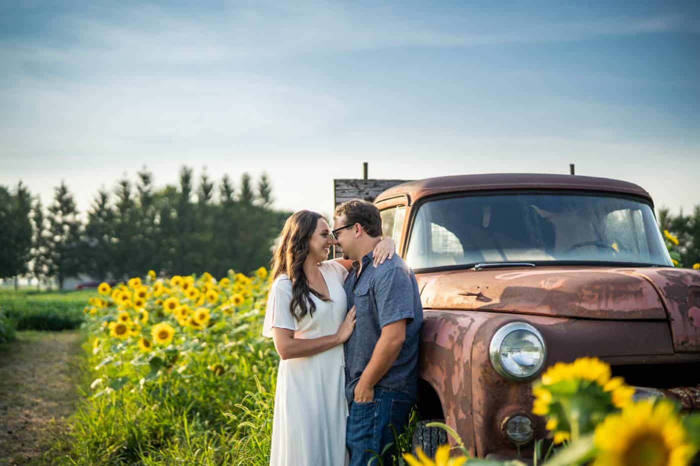 I had so much fun photographing Andrew and Morgan on their recent engagement session. Not only did we have a gorgeous evening but some beautiful locations. We started their session at Blonde Seed where they have a beautiful sunflower field you can visit for a donation to CK Hospice. We finished their session on the family farm where they will be getting married next summer.