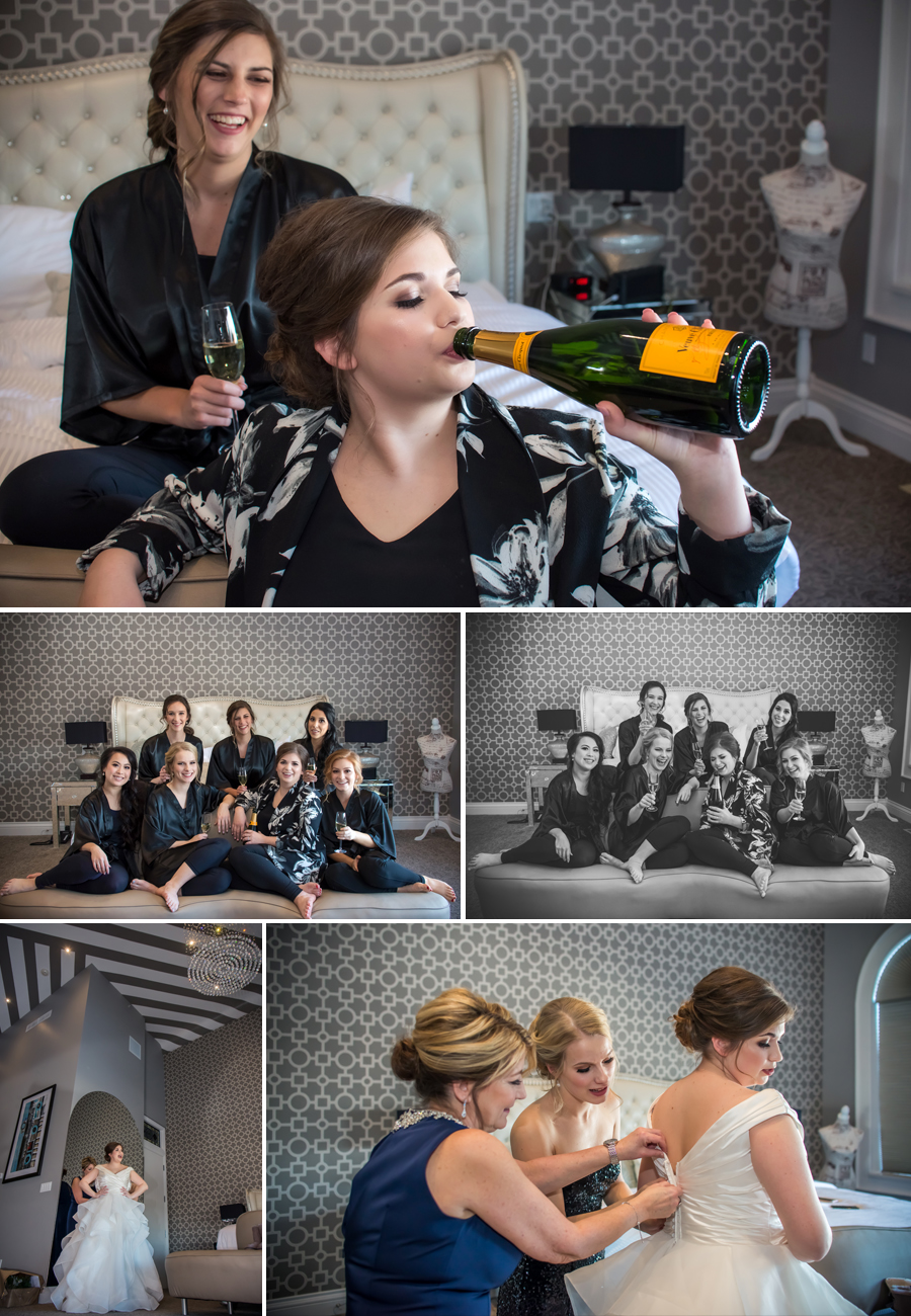 Brett and his gang spent the morning at Blazin BBQ Ribhouse.  It was a great location for them to play some golf and have some snacks before getting ready. The girls had a quiet morning at the Retro Suites here in Chatham.  They were able to spend a fun night together before the morning prep. The hairdressers and makeup artist came right to the hotel to get the girls ready. It was my first time working with Brettlie’s Beauty Room and I was impressed. Not only did she do a fantastic job on the girls wedding make-up but she also kept to the schedule.