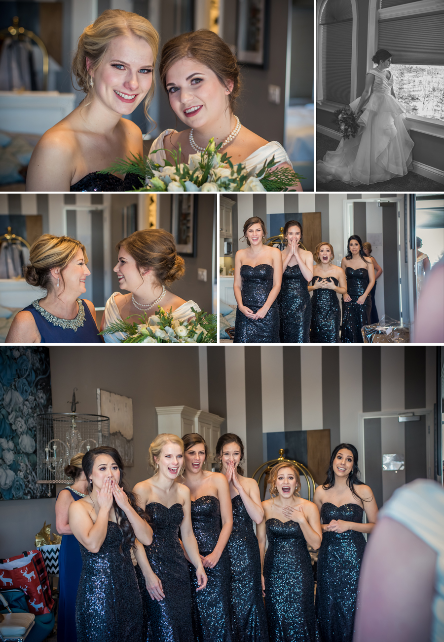 Once the Purple Pansy Flower Boutique dropped off the bouquets things began to feel real. Gena was getting really excited to see Brett for their first reveal. They wanted a quiet first reveal with just the two of them. It was beautiful and as Brett would say a little cold out. ;)