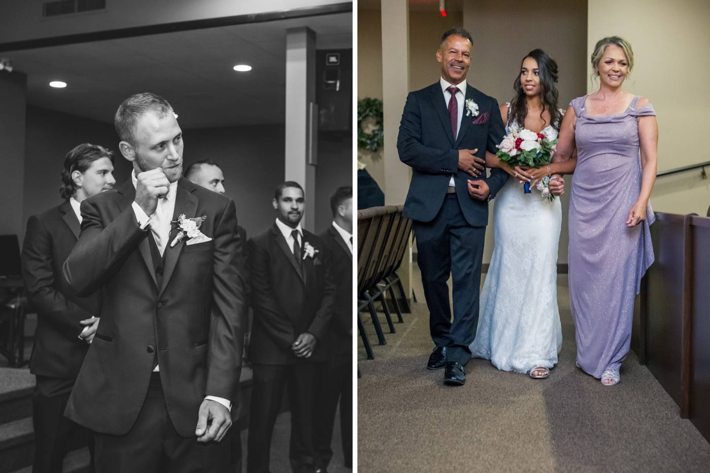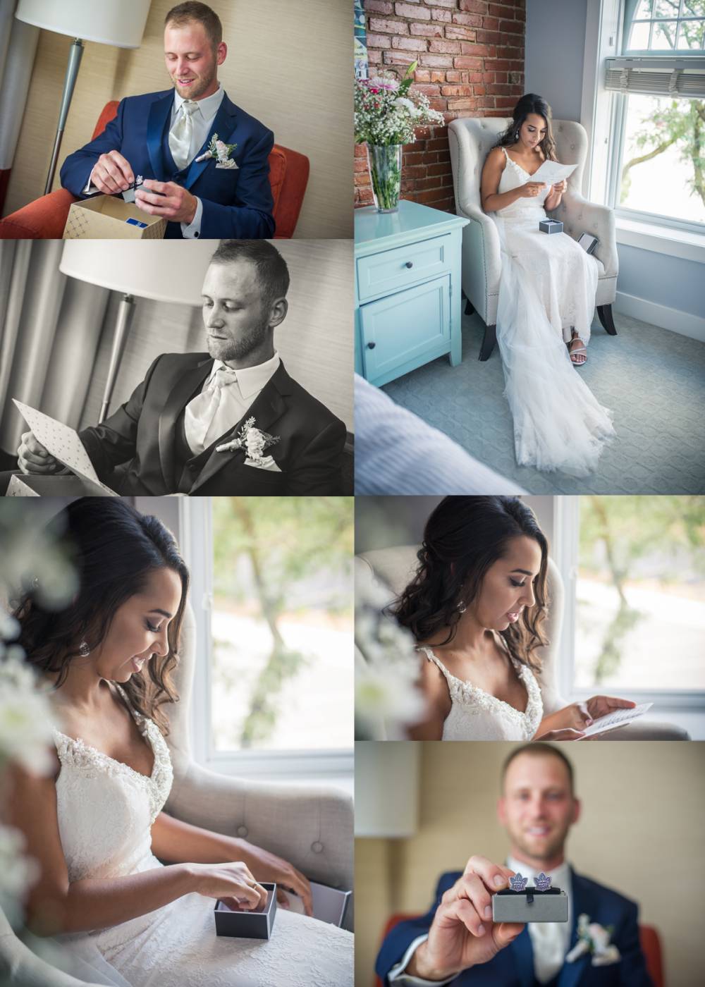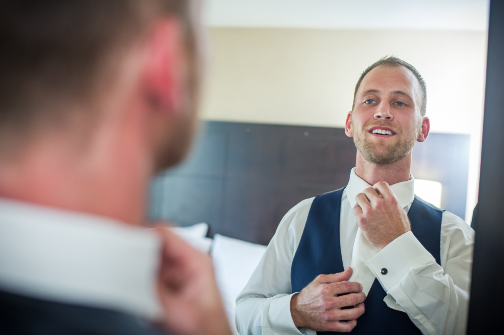 Chris spent his morning with the guys getting wedding ready at the Holiday Inn Bridal Suite. It was a quick drive over to Praise Fellowship Church in Chatham for their ceremony. Hilary had her Aunt officiate the wedding. What an amazing, personal touch!
