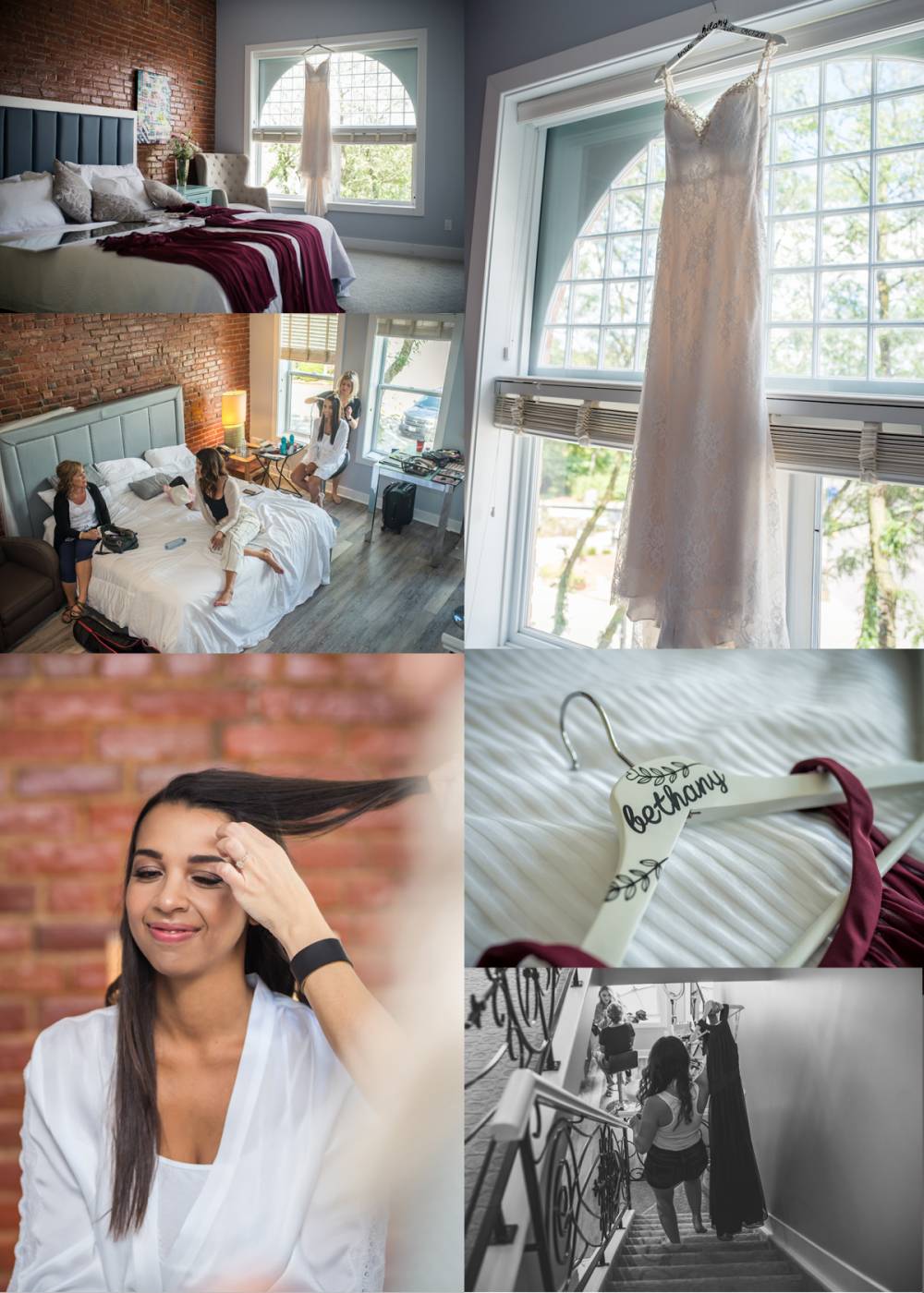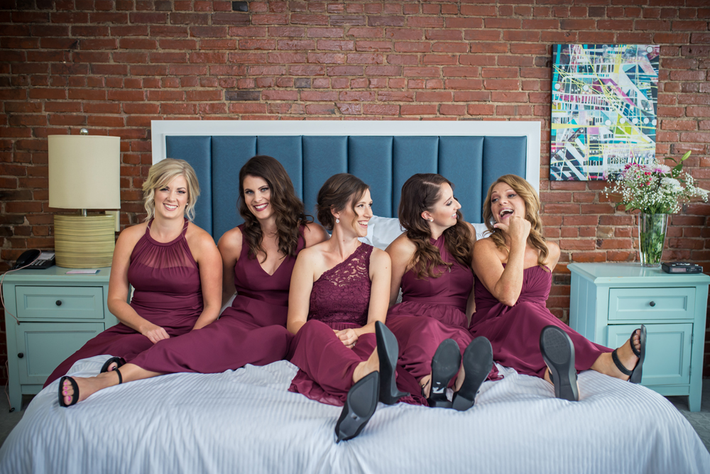 Hilary and the girls spent their morning getting ready at the Retro Suites Hotel in Downtown Chatham. This has to be one of my favourite locations in Chatham-Kent. It makes for the perfect setting for getting ready pictures. There is plenty of space to fit you and your wedding party in there. This was my first time working with Dani Lynn Artistry who did a fabulous job on all the girls make-up as well as with Jenica Ramboer styling the girls hair.