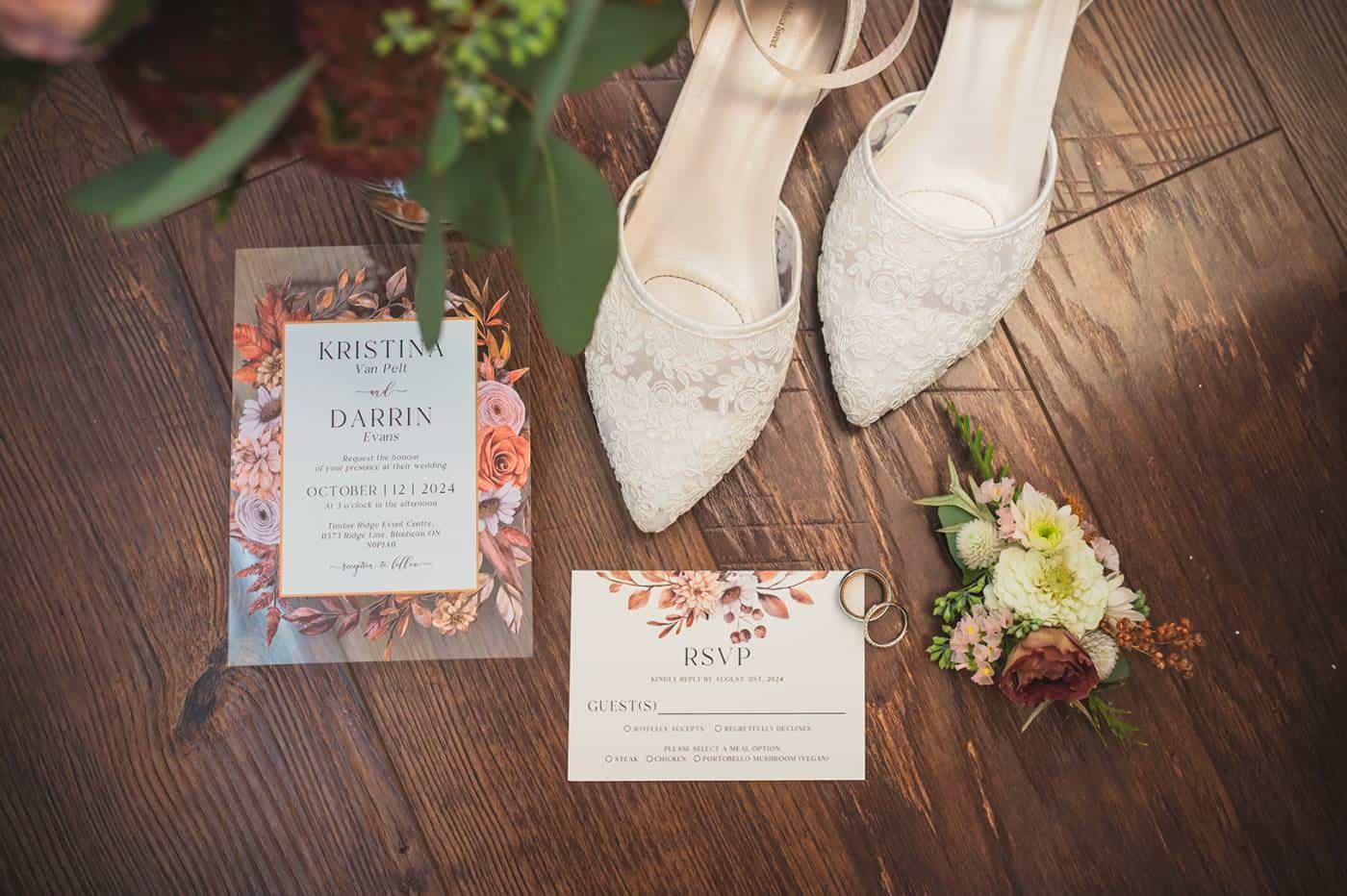 Darrin and Kristina’s fall wedding was a perfect blend of elegance and natural beauty, celebrated on a sunny Thanksgiving weekend at the stunning Timber Ridge wedding venue. The day began with the guys enjoying a relaxed brunch at Chilled Cork restaurant, followed by getting ready at the Retro Suites hotel. Meanwhile, the bride and her bridesmaids prepared at her sister’s home, where they had their hair and makeup done, setting the stage for a day filled with love and laughter.