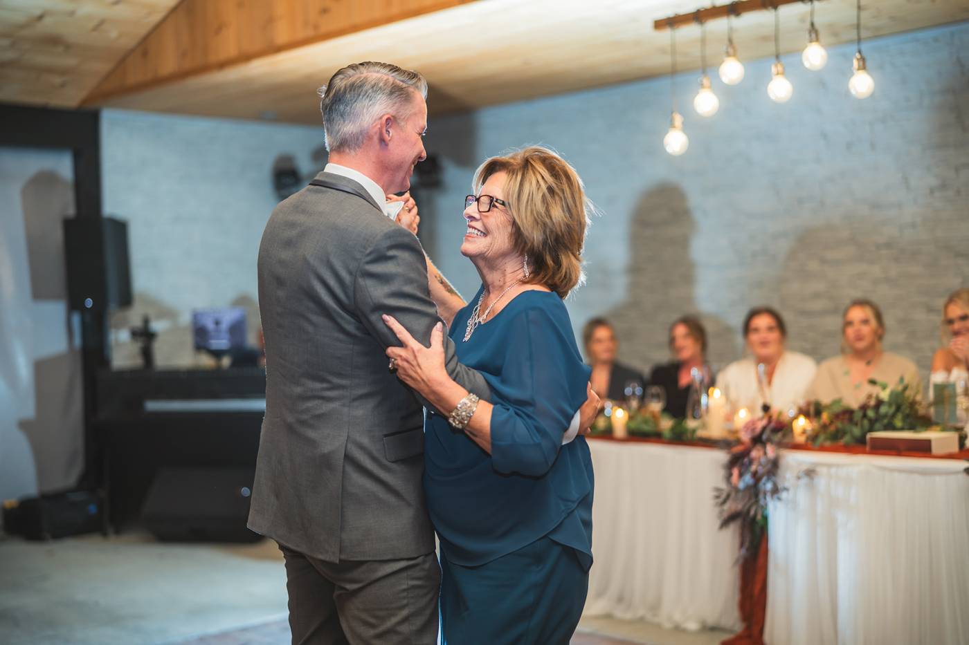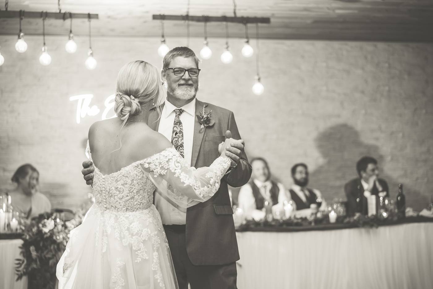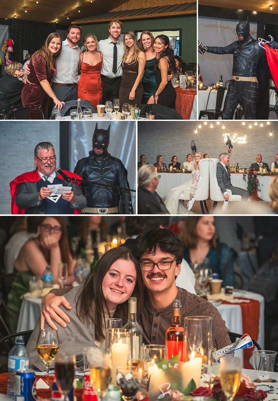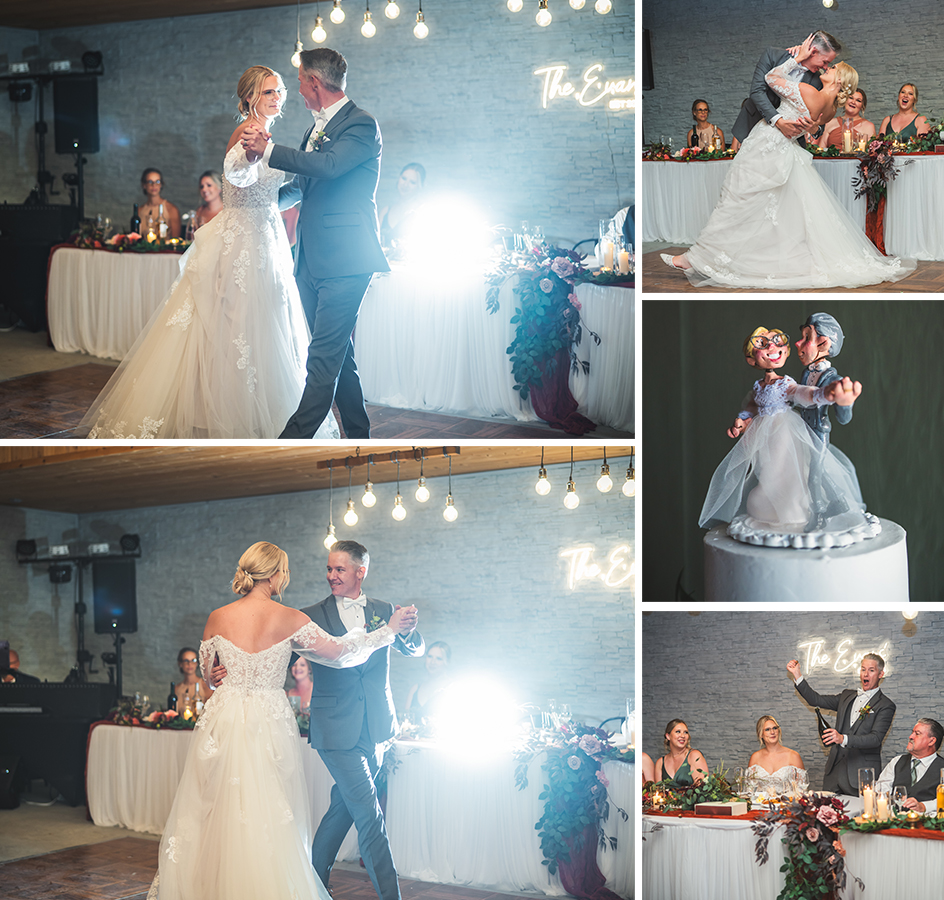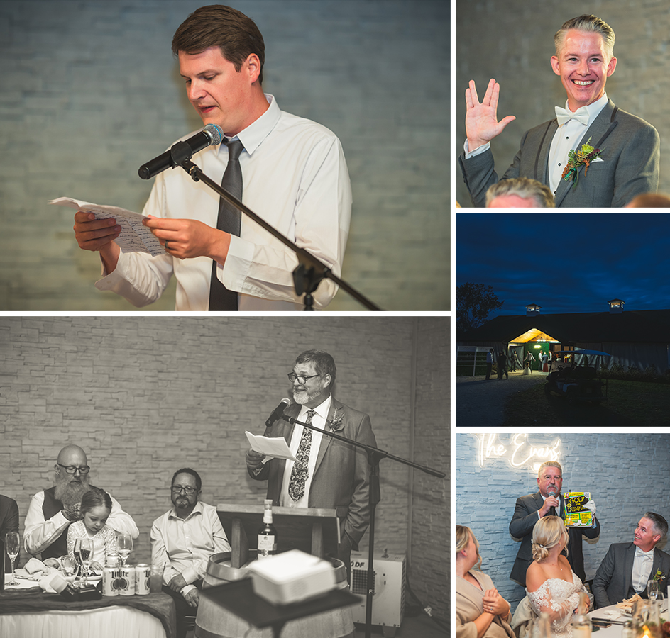 The celebration continued with a choreographed first dance that captivated everyone. Afterward, guests were treated to a delicious meal catered by Willow Ridge, followed by heartfelt speeches, the father-daughter dance, and the mother-son dance. As the night unfolded, a storm rolled in, but the cozy atmosphere inside the venue kept everyone dry and warm.
