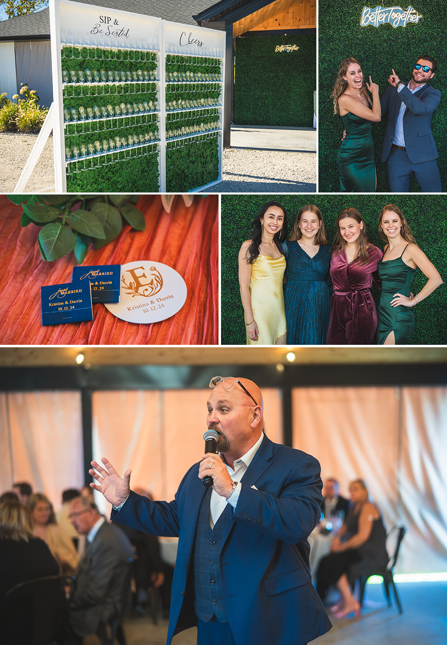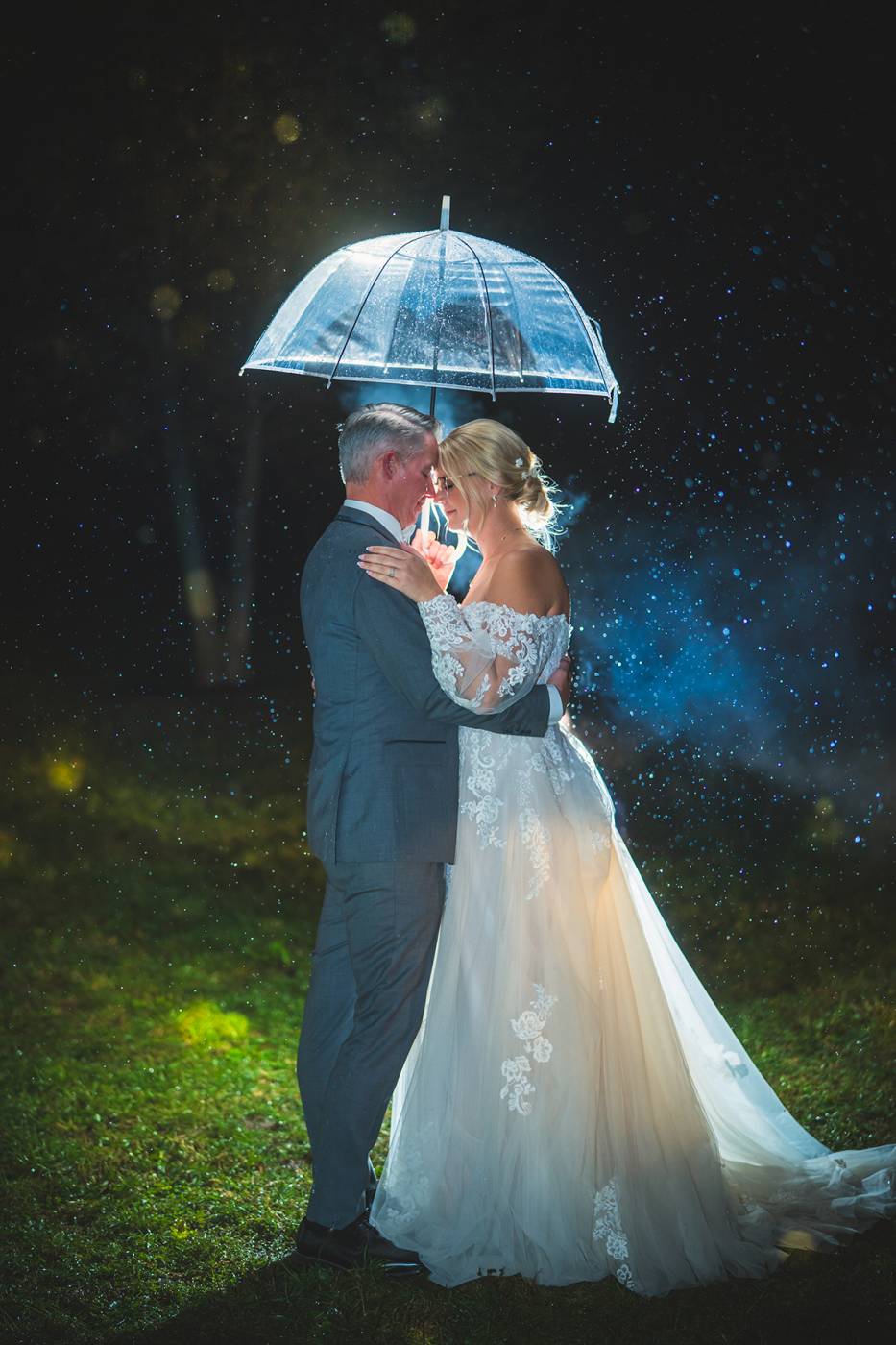 The evening ended on a high note with a dramatic, rain-soaked night photo of Darrin and Kristina—one of those magical moments where the rain added to the romance, creating an unforgettable memory to close out their perfect day. It was a beautiful celebration of love, family, and the changing seasons.