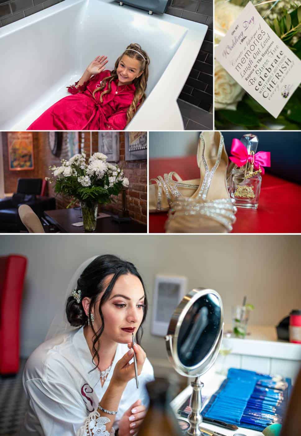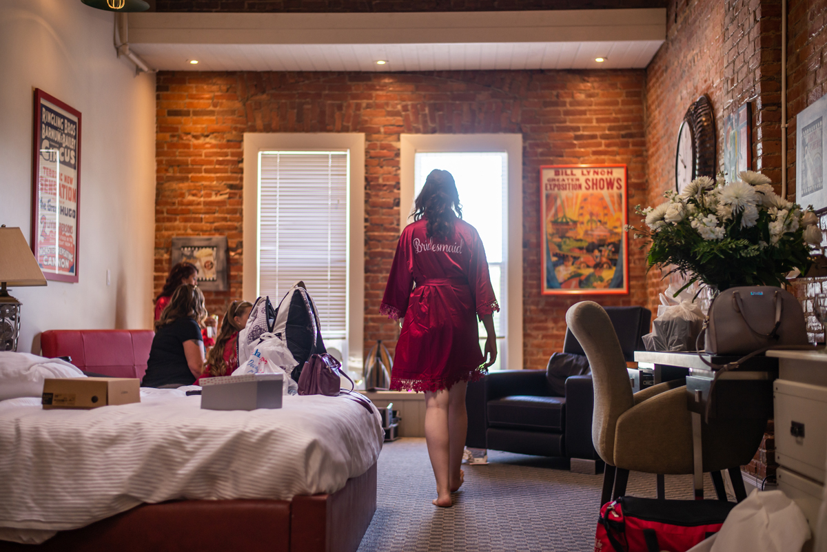 Samantha spent the morning with her girls prepping at the fabulous Retro Suites Hotel. Samantha is so talented and did her own make-up for her wedding day as well as for her engagement session. You can look back on those photos here. I was really impressed. When the flowers were delivered from the Purple Pansy things really started to feel real.
