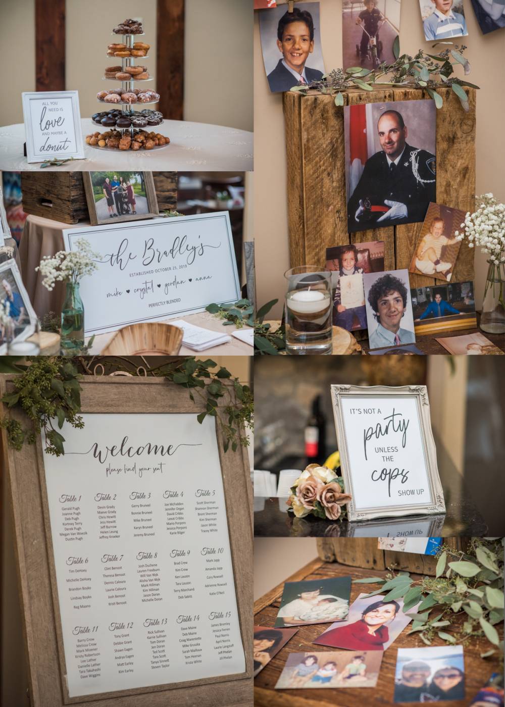 There are so many things that come to mind when I think back to Mike and Crystals Wedding Day. From the little touches of decor that made the venue theirs, the pictures of them growing up,  the doughnut wedding cake, the unique flowers they had designed by Syd Kemsley Florist, their personal hashtag they created #TheBradleysPerfectlyBlended,  the laughter…..so much laughter and love. Love between them but also the love you could feel they held for their friends and family.