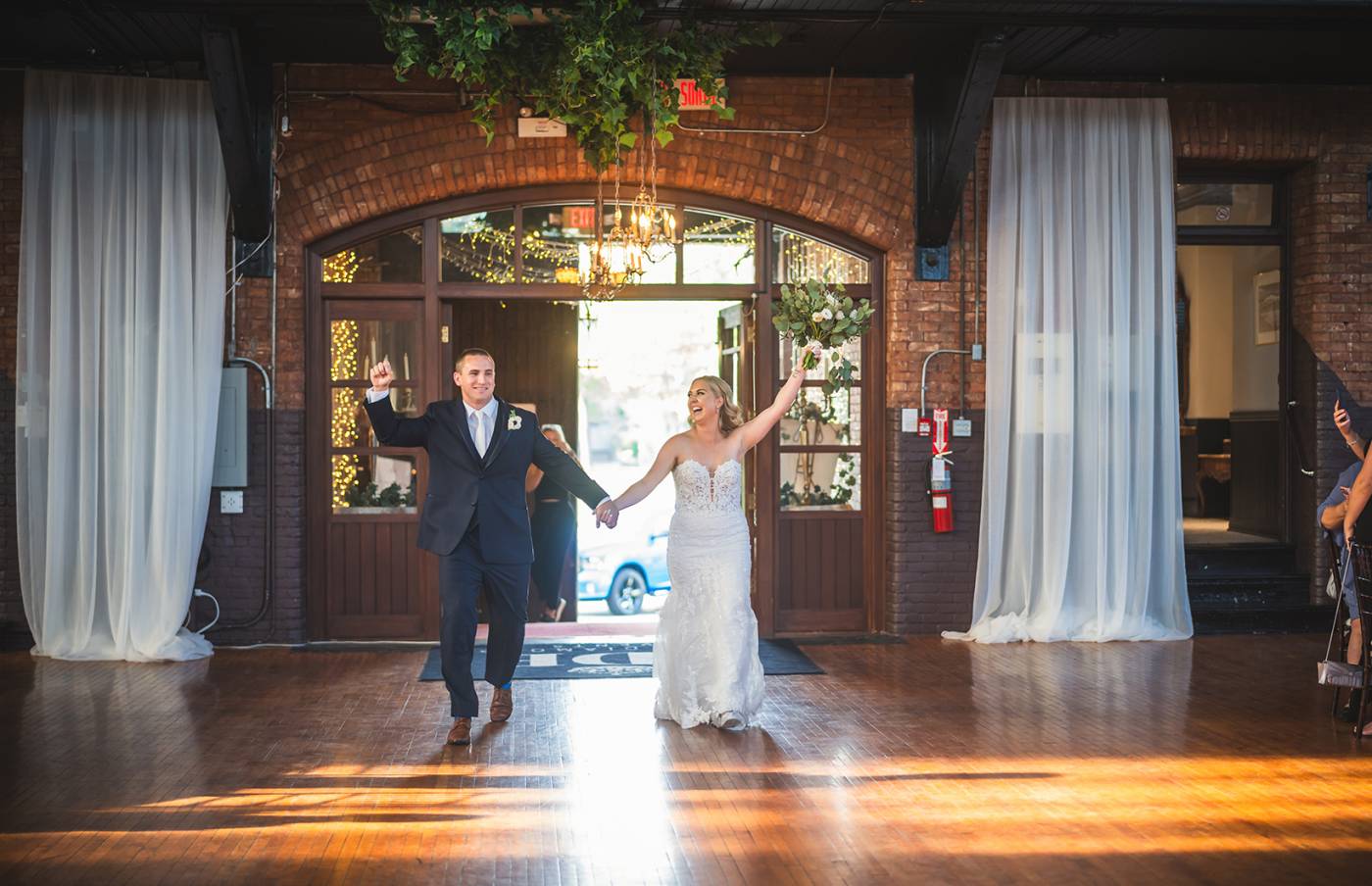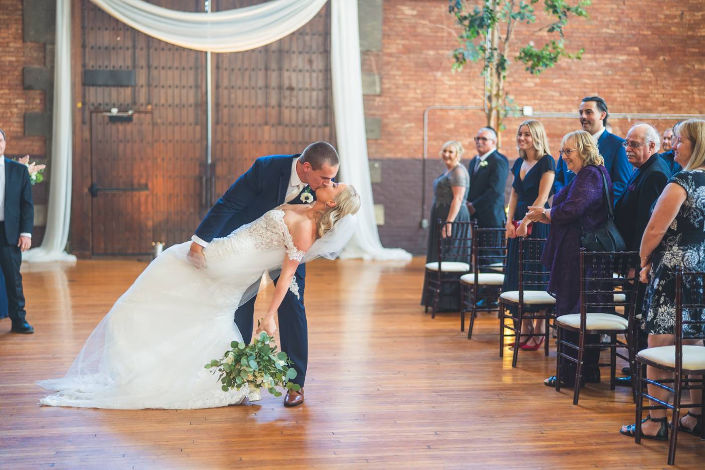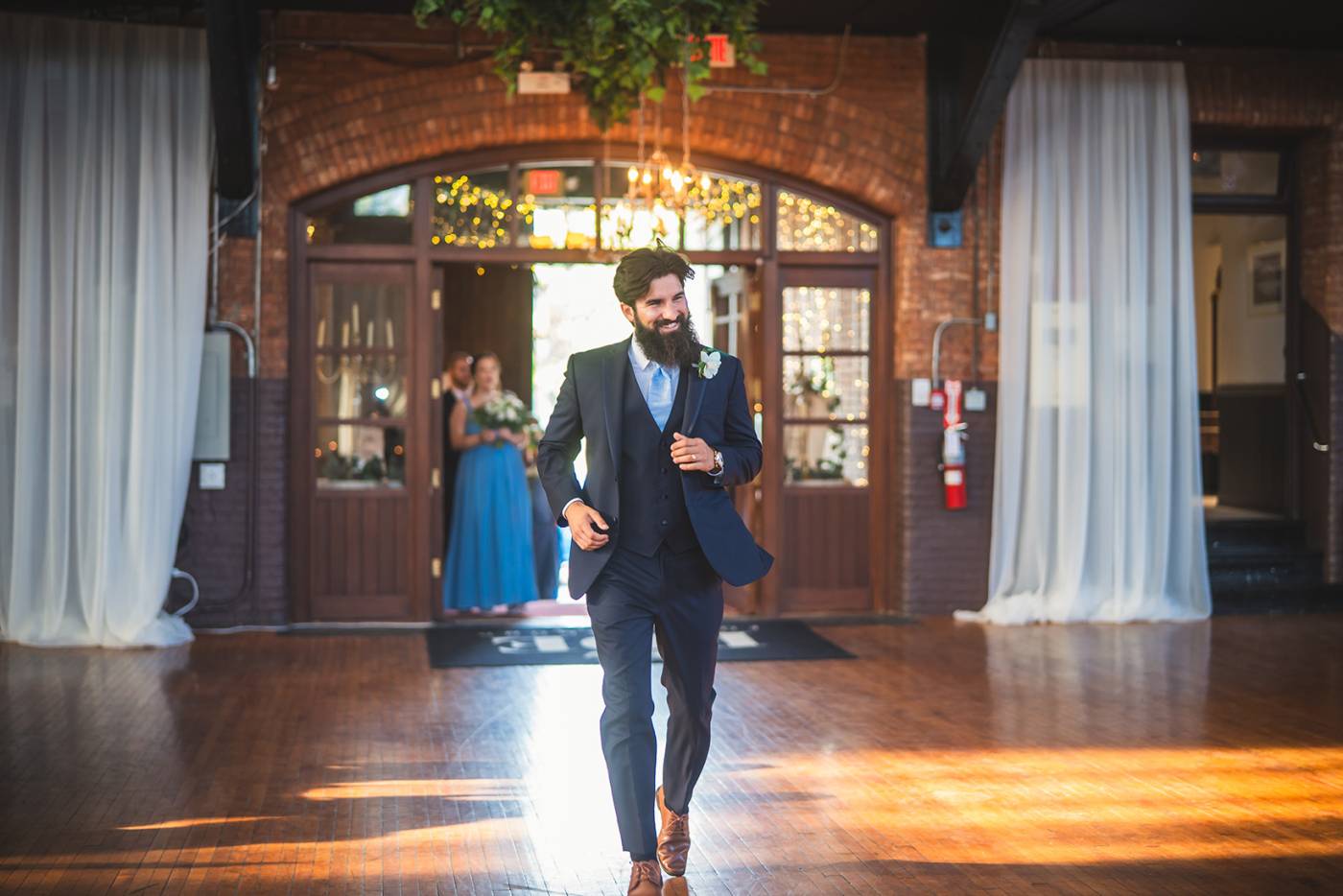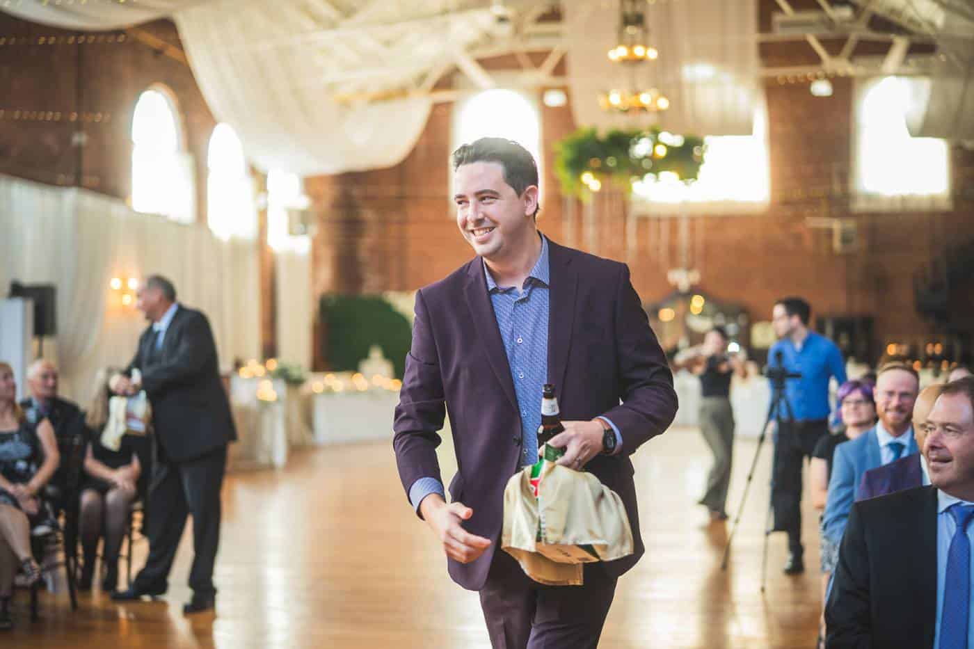 From there, the festivities moved to the historic Armories, where Mitch and Jordan’s ceremony took place in front of their closest friends and family. True to their playful spirit, they opted for “beer boys” instead of traditional flower girls, delighting the crowd. In a fun twist, they also hid the wedding rings, making the ceremony even more memorable by having a random guest serve as an impromptu ring bearer!