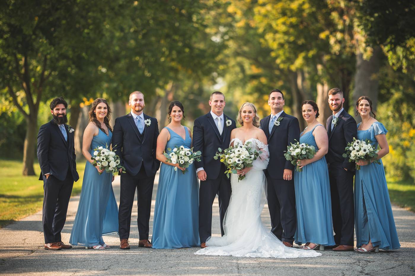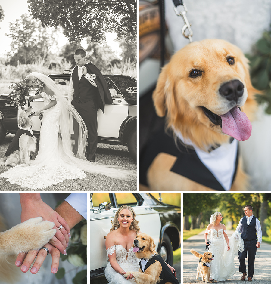 After the ceremony, the wedding party gathered for photos, capturing a mix of timeless, classic shots and candid moments filled with laughter. The couple’s beloved golden retriever, Miller, joined them for some photos, and of course, he was the perfect good boy, adding a touch of extra charm to the day.