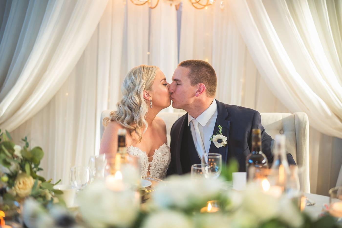 Mitch and Jordan’s September wedding was a perfect blend of classic elegance and lighthearted fun. The day started at the stylish Retro Suites Hotel, where they got ready surrounded by their closest friends. There was a palpable sense of excitement in the air as Mitch and Jordan prepared for their special moment—a private first look and intimate vow exchange at the beautiful Studio Sisters Studio in downtown Chatham. It was a peaceful, emotional moment for the couple, a chance to savor their love in private before the whirlwind of the day truly began.