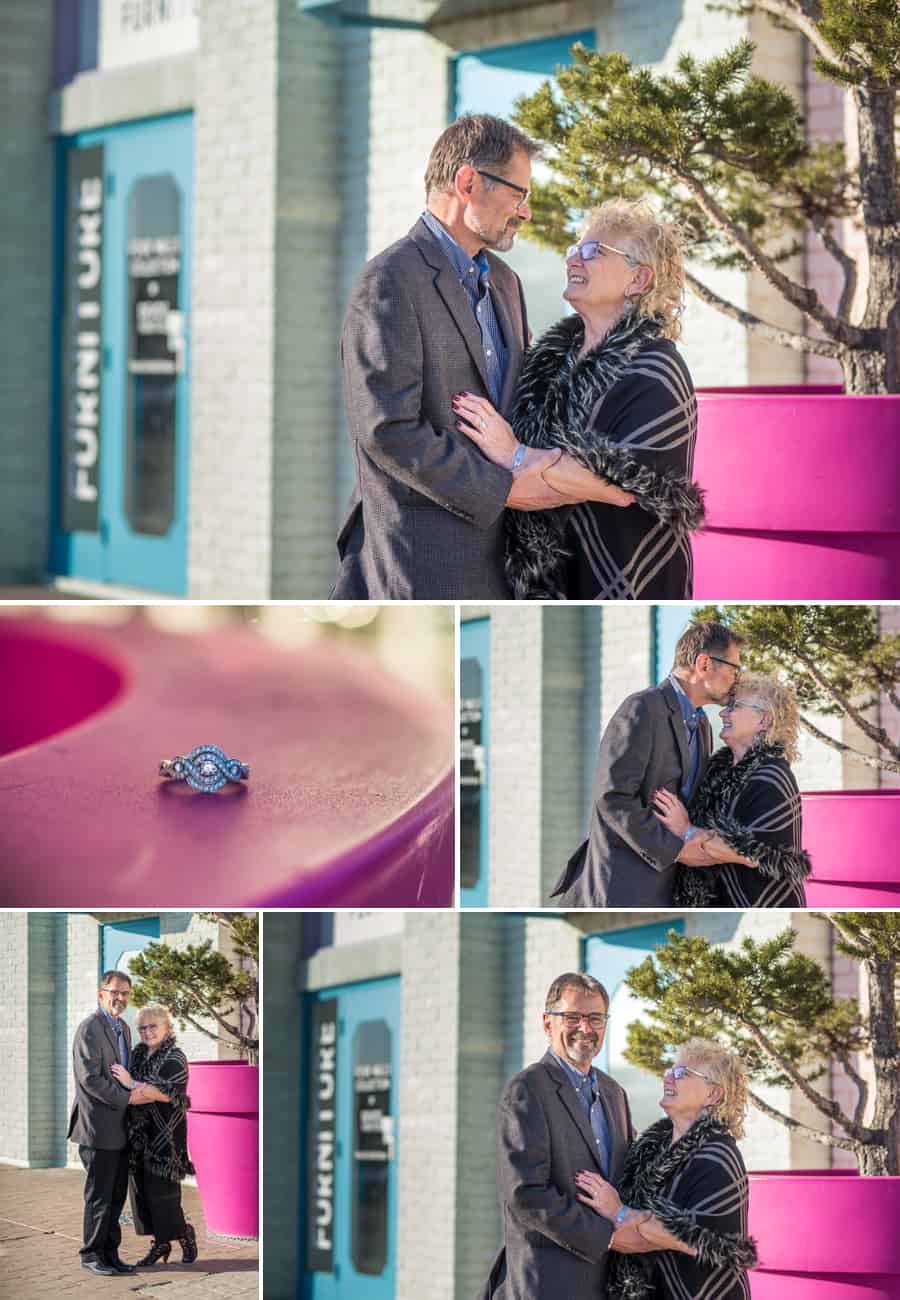 When my Mom and her boyfriend Pat came home from their cruise a few weeks ago, I had them over for dinner. I wanted to see pictures and hear all about their adventures. Little did I know they had a big adventure to share with me. Pat had purposed to my Mom on the balcony of their room. It had been something he was planning to do for some time, he was waiting for just the right moment. When they finally got the news out both were giggling and bouncing in their seats like school children. After congratulations my next comment was that we had to take engagement pictures!
